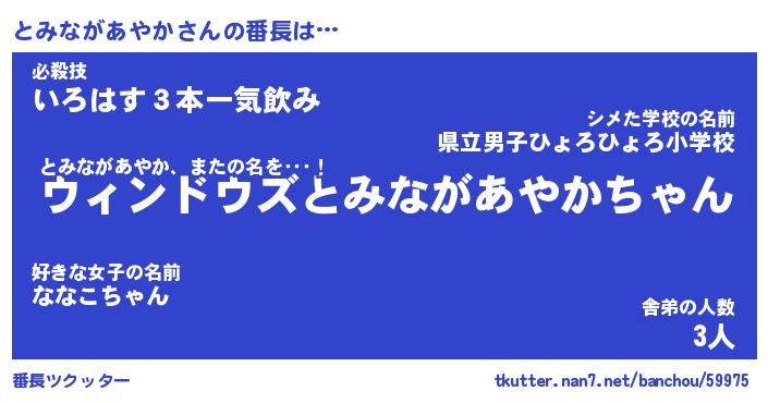 | 恥ずかしいあだ名 | 『プリティーとみながあやか』『とみちん』 |