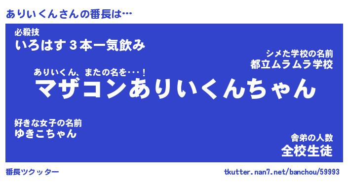| ヘコむあだ名 | 『ありもー』『なまこ酢』『あり太郎』 |