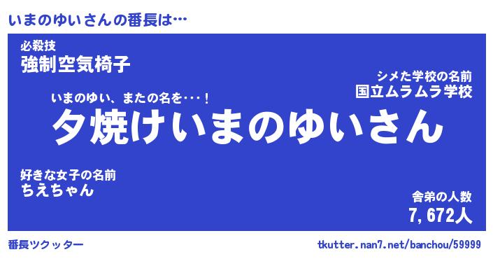 | 肩書あだ名 | 『いまのゆい社長』『いまのゆい総理大臣』 |