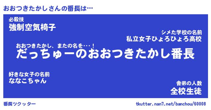 | 肩書あだ名 | 『おおつきたかし御曹司』 |