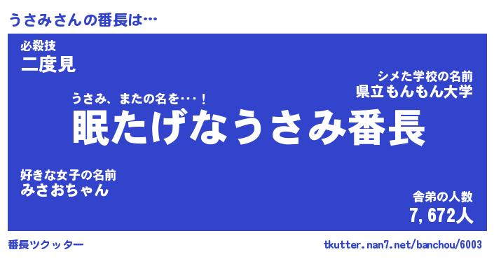 | 肩書あだ名 | 『うさみ社長』『うさみ国家主席』 |