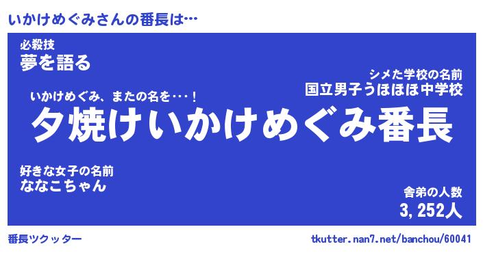 | 2回繰り返すあだ名 | 『いかいか』『いいかか』『ぐちぐち』 |