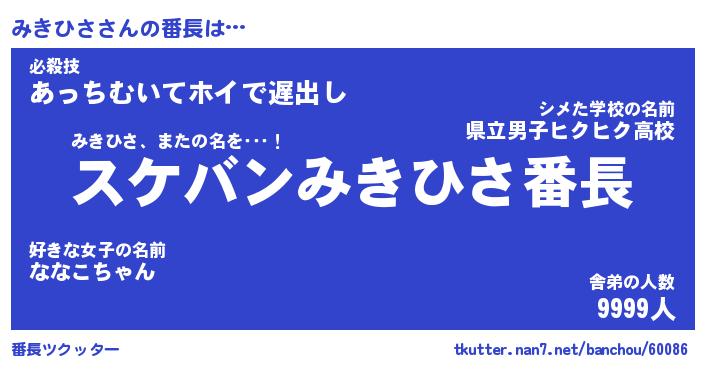 | 意味不明あだ名 | 『ペロリンみきひさ』『永久保存みきひさ』 |