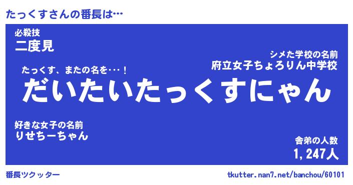 | 肩書あだ名 | 『たっくすCEO』『たっくす総理大臣』 |