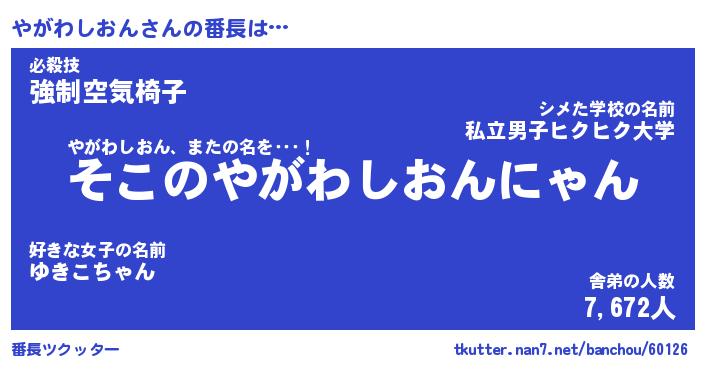 | ヘコむあだ名 | 『やがにー』『牛乳』『やがぷりん』 |
