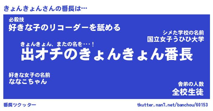 | 伝説のあだ名 | 『伝説のスナイパーきょんきょん』 |