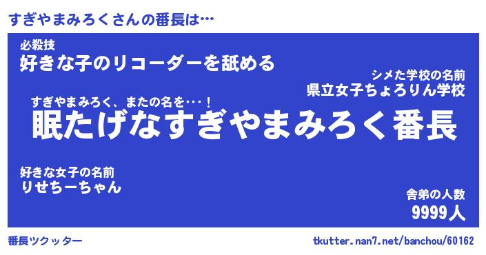 | 伝説のあだ名 | 『封印されしスナイパーすぎやまみろく』 |