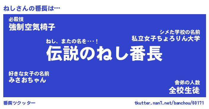 | 2回繰り返すあだ名 | 『ねしねし』『ねねしし』『いらいら』 |