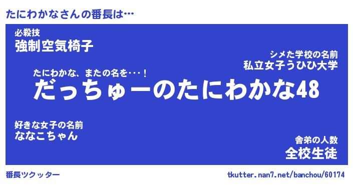 | 肩書あだ名 | 『たにわかな御曹司』『たにわかな塾長』 |