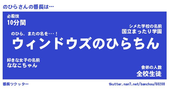 | ヒーロー風カッコイイあだ名 | 『スーパーノヒラ』『ウルトラのひらマン』 |