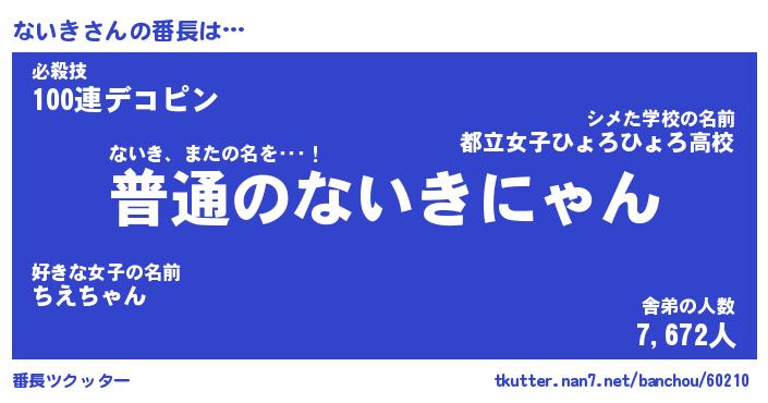 | ポケモン風あだ名 | 『ナイチュウ』『ナイキダネ』 |