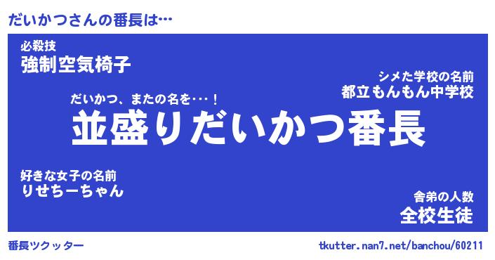 | 意味不明あだ名 | 『ペロリンだいかつ』『永久保存だいかつ』 |
