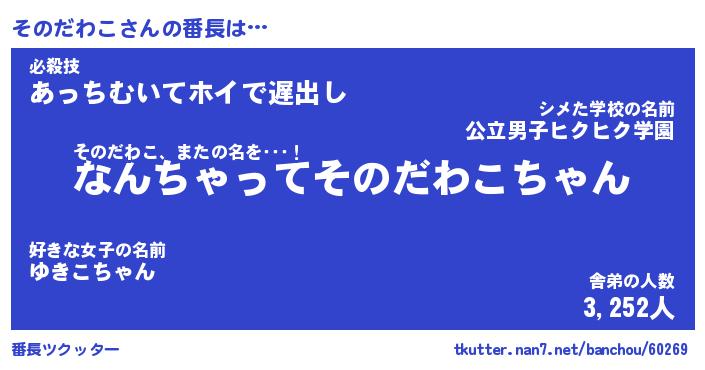 | ポケモン風あだ名 | 『ソノチュウ』『ソノダダネ』 |