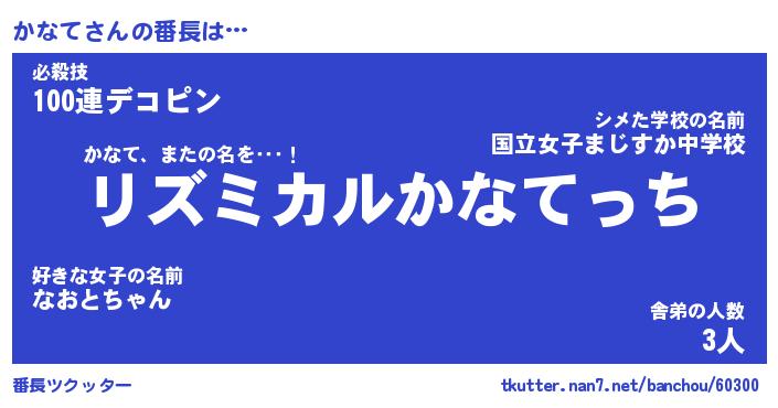 | ヒーロー風カッコイイあだ名 | 『スーパーカナテ』『ウルトラかなてマン』 |
