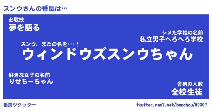 | ヒーロー風カッコイイあだ名 | 『スーパースンウ』『ウルトラスンウマン』 |