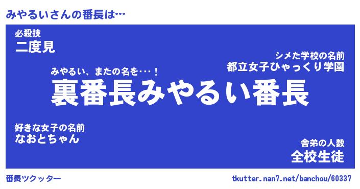 | ファンタジー風あだ名 | 『ミヤフェル』『エターナルミヤルイー』 |