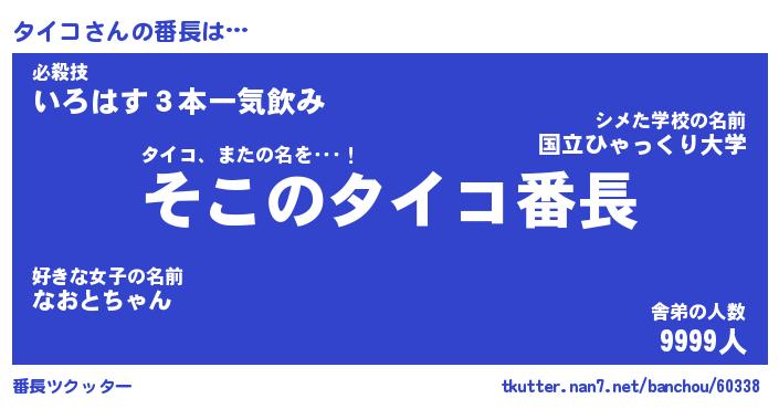 | ピコ太郎風あだ名 | 『タコ次郎』『ピタ四郎』『タイ一郎』 |