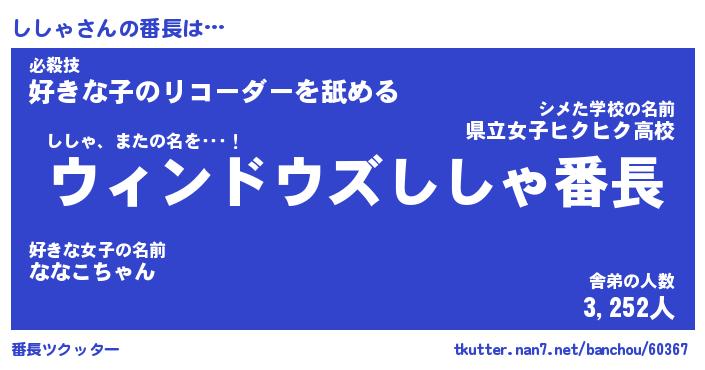 | 意味不明あだ名 | 『ペロリンししゃ』『ししゃフォーエバー』 |