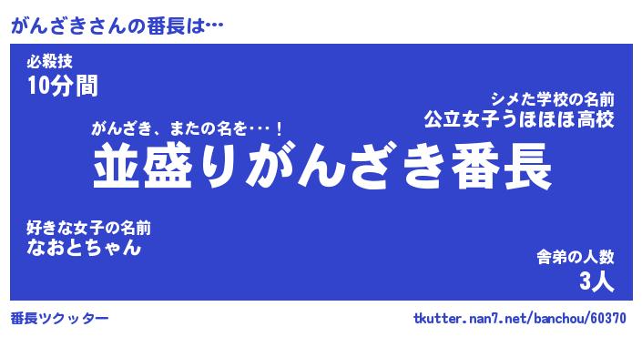 | ポケモン風あだ名 | 『ガンチュウ』『ガンザダネ』 |