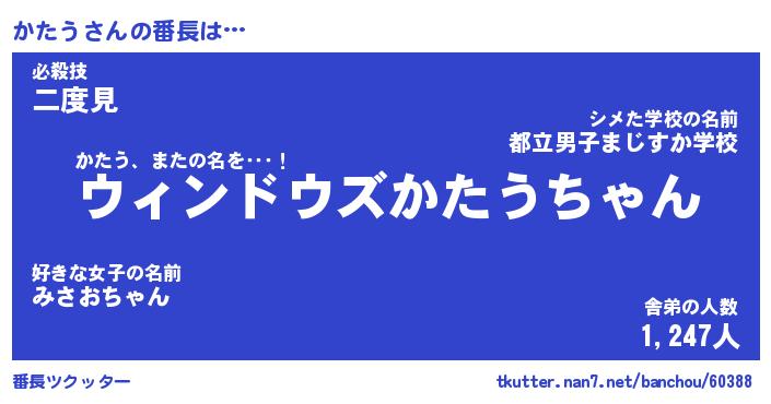 | ヒーロー風カッコイイあだ名 | 『スーパーカタウ』『ウルトラかたうマン』 |