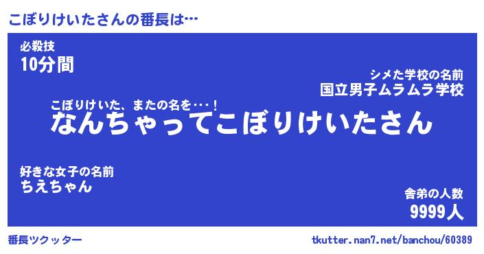 | ヒーロー風カッコイイあだ名 | 『スーパーコボリケイタ』『天弓騎士コボ』 |