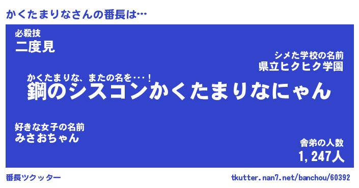 | ヘコむあだ名 | 『かくにゅー』『なまこ酢』『かくを』 |