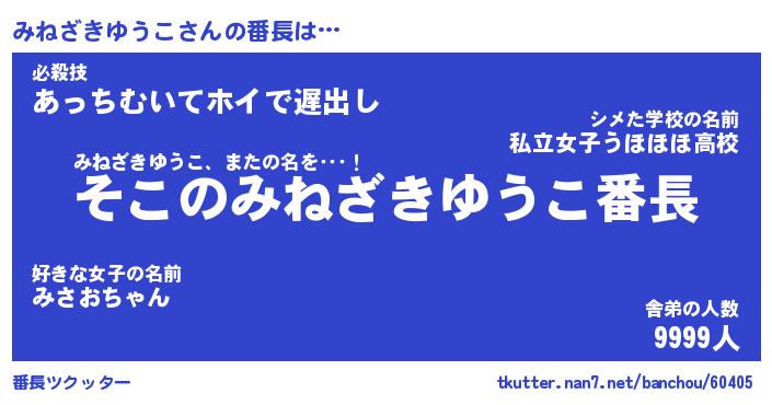 | 肩書あだ名 | 『みねざきゆうこ御曹司』 |