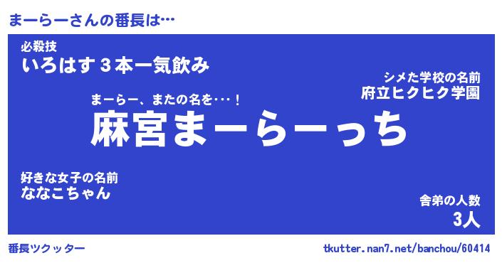 | 意味不明あだ名 | 『ペロリンまーらー』『永久保存まーらー』 |