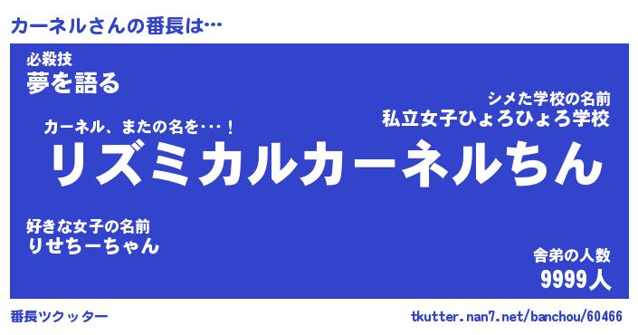 | 意味不明あだ名 | 『ペロリンカーネル』『永久保存カーネル』 |