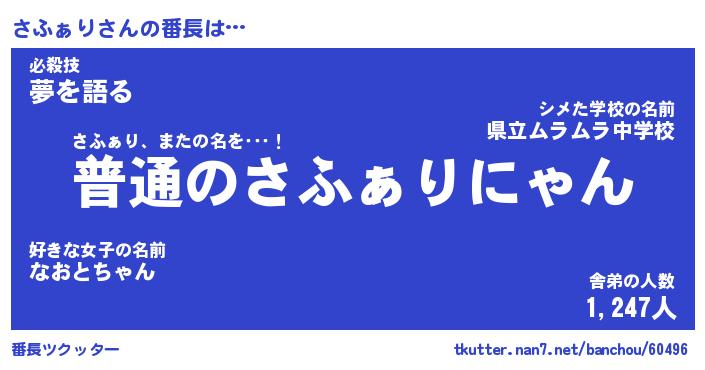 | 意味不明あだ名 | 『ペロリンさふぁり』『永久保存さふぁり』 |