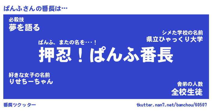 | ヒーロー風カッコイイあだ名 | 『スーパーパンフ』『ウルトラぱんふマン』 |
