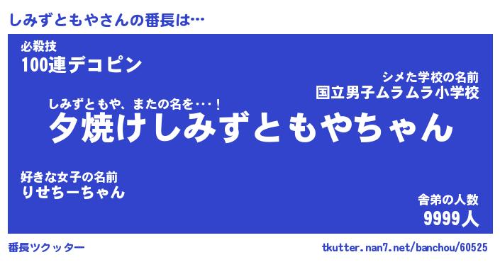 | 伝説のあだ名 | 『封印されしスナイパーしみずともや』 |