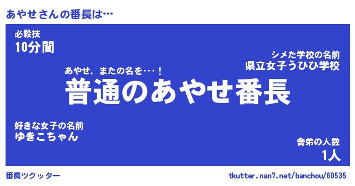 | 肩書あだ名 | 『あやせ店長』『あやせ総理大臣』 |