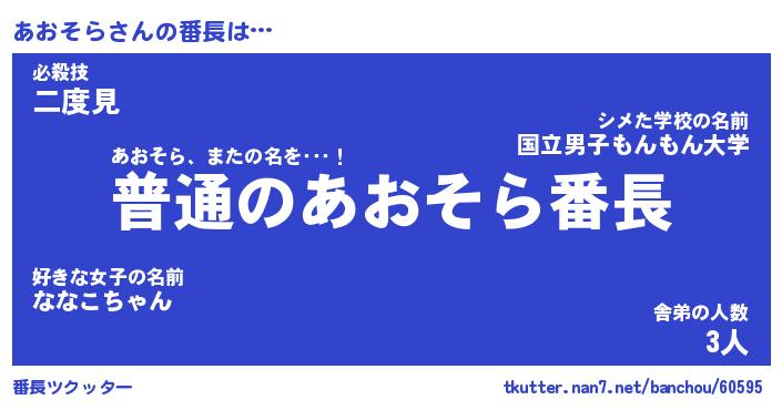 | 意味不明あだ名 | 『ペロリンあおそら』『永久保存あおそら』 |