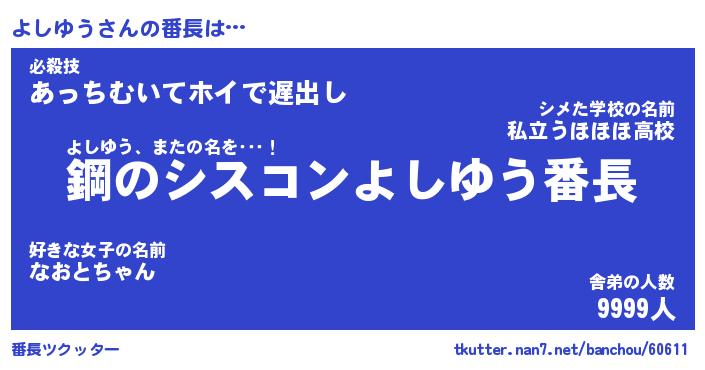 | 意味不明あだ名 | 『ペロリンよしゆう』『永久保存よしゆう』 |