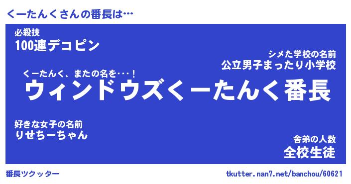 | 肩書あだ名 | 『くーたんく店長』『くーたんく総理大臣』 |