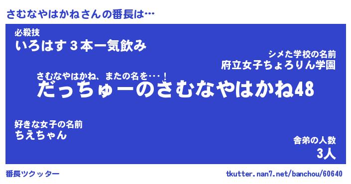 | ヘコむあだ名 | 『さむっふぃ~』『酢こんぶ』 |