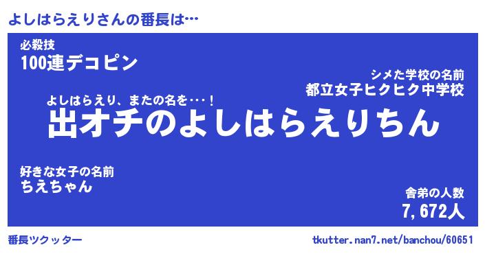 | 伝説のあだ名 | 『伝説のスナイパーよしはらえり』 |