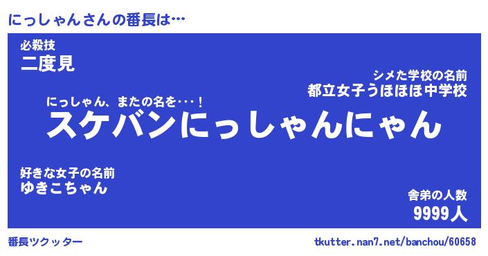 | ヒーロー風カッコイイあだ名 | 『スーパーニッシャン』『天弓騎士ニッ』 |