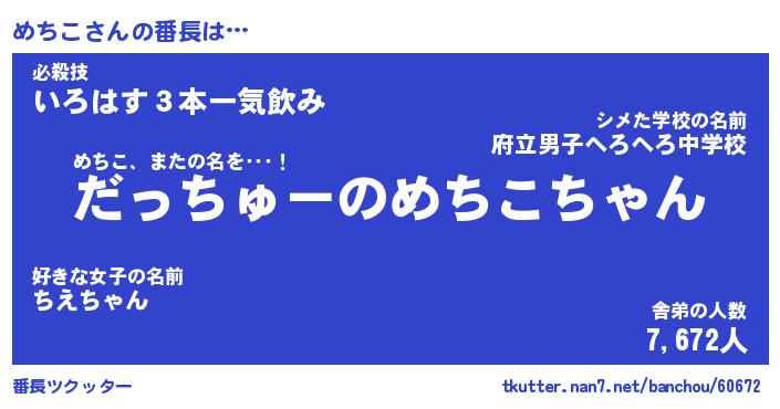 | ヒーロー風カッコイイあだ名 | 『スーパーメチコ』『ウルトラめちこマン』 |