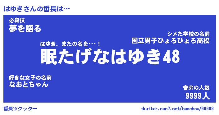 | ヒーロー風カッコイイあだ名 | 『スーパーハユキ』『ウルトラはゆきマン』 |