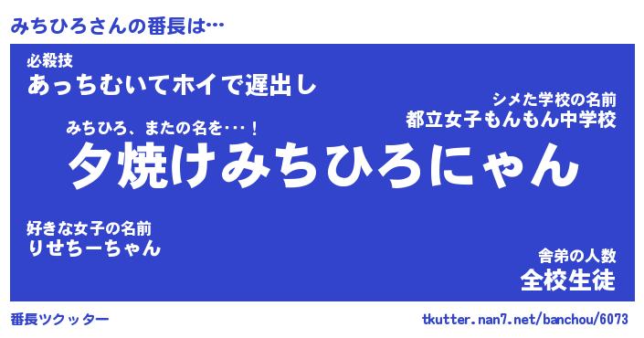 | 猫の名前『みちひろーにゃん』性別『♀』 |