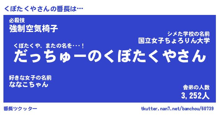 | 2回繰り返すあだ名 | 『くぼくぼ』『くくぼぼ』『ぽそぽそ』 |