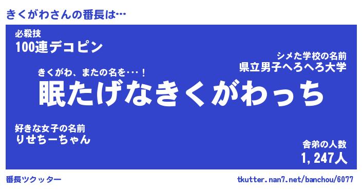 | 伝説のあだ名 | 『封印されしスナイパーきくがわ』 |