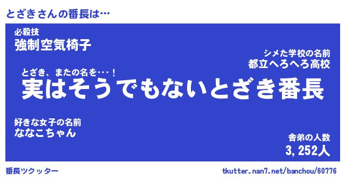 | ポケモン風あだ名 | 『トザチュウ』『トザキダネ』 |