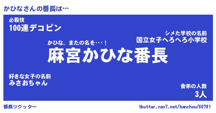 | ポケモン風あだ名 | 『カヒチュウ』『カヒナダネ』 |