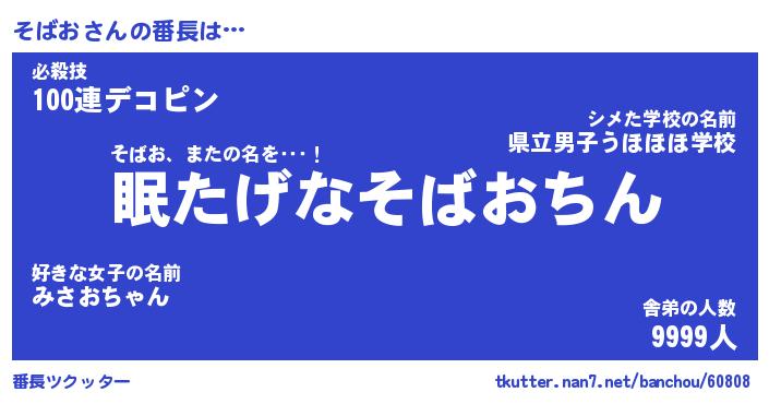 | ヒーロー風カッコイイあだ名 | 『スーパーソバオ』『ウルトラそばおマン』 |