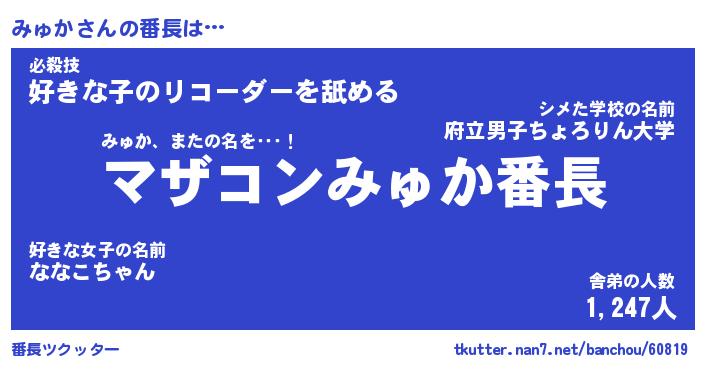 | 肩書あだ名 | 『みゅかCEO』『みゅか国家主席』 |