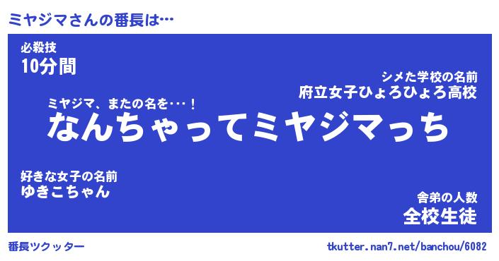 | ファンタジー風あだ名 | 『ミヤフェル』『エターナルミヤジマー』 |