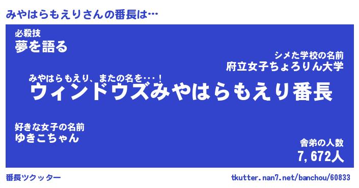 | 男性向けラノベタイトル風あだ名 | 『みやはらもえりの憂鬱』 |